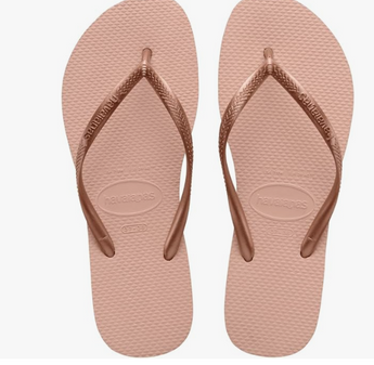 - OWN THE BEACH: The Havaianas Slim collection has all the stylish features of the Top collection, such as the block colour sole and strap, iconic Greek key strap pattern and an embossed Havaianas strap logo, but offers more feminine silhouette. The thinner straps and sole lead to a more elegant appearance that still retains the classic Havaianas comfort.