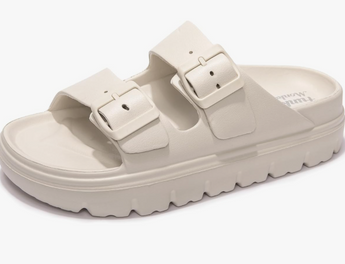 FUNKYMONKEY Women's Comfort Slides Double Buckle Adjustable EVA Flat Sandals